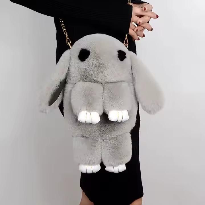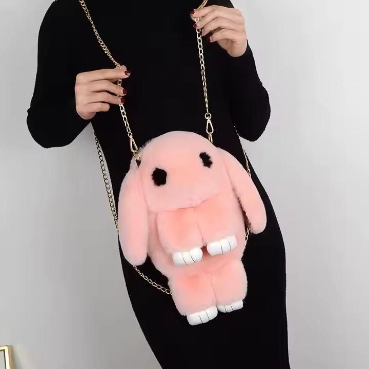 Product Name: Cute Fluffy Rabbit Fur Pompoms Sling Chain Bag
